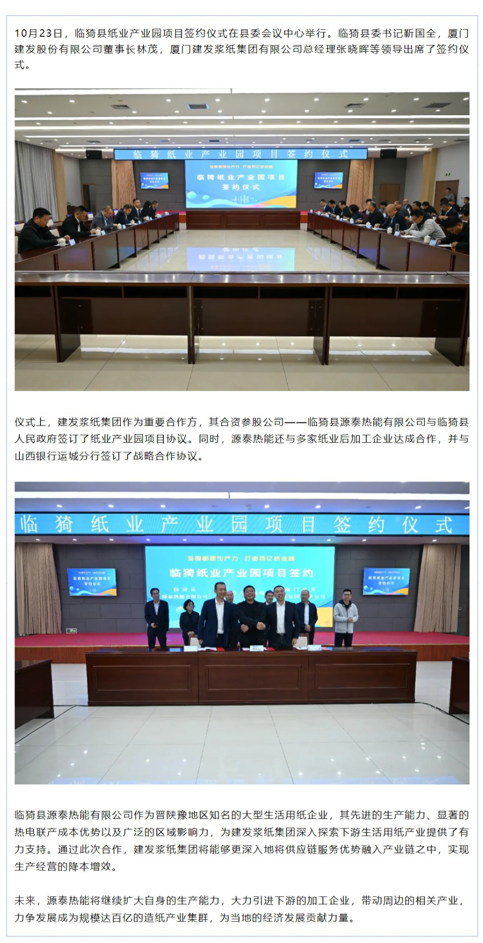 江南在线注册集团与临猗县源泰热能合作推进纸业产业园项目